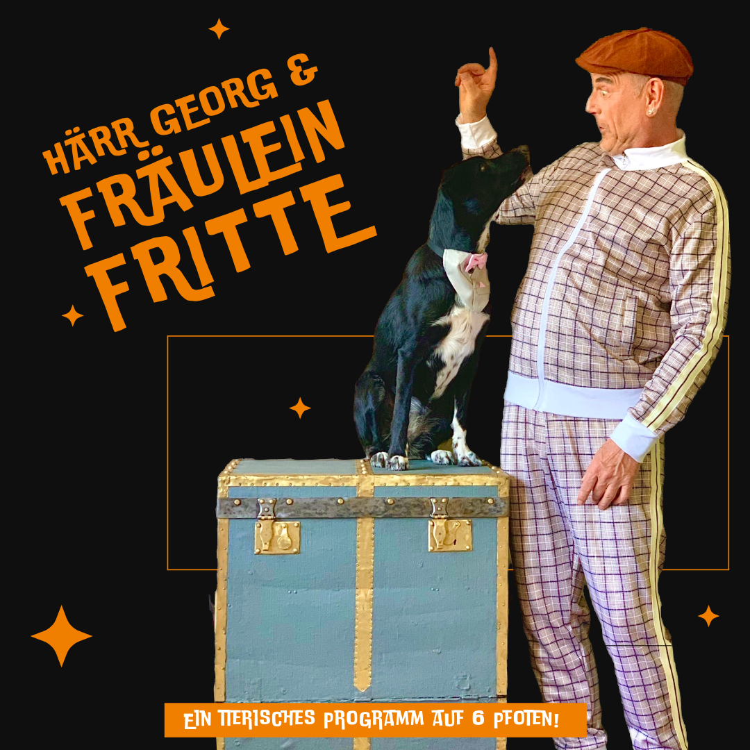 Jetzt wird’s tierisch: Härr Georg hat Verstärkung bekommen – von seiner vierbeinigen Partnerin Fräulein Fritte, einer charmantes Border-Collie-Fräulein. Gemeinsam präsentieren die beiden ein fröhliches Mitmach-Programm, das Clownerie, Comedy und Artistik mit tierischem Witz verbindet.
