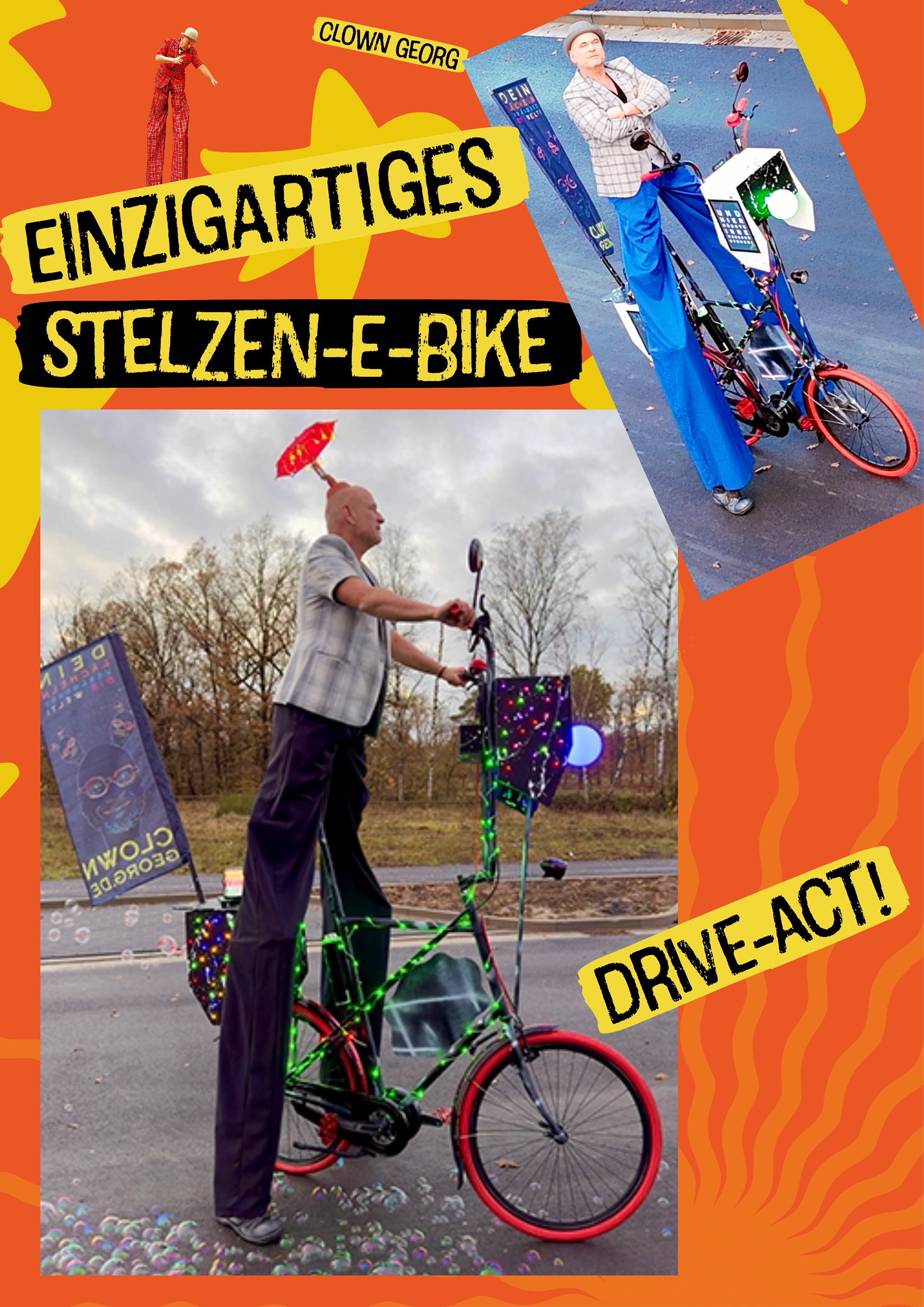 Ein Stelzen-E-Bike, das europaweit einzigartig ist – und ein Künstler, der Lebensfreude auf Augenhöhe (und darüber hinaus) bringt.